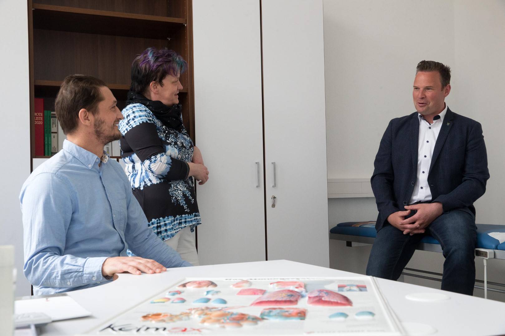 Bürgermeister Andreas Buchheim (r.) ist froh und dankbar darüber, dass Landarzt Dr. Fabian Gotschlich und dessen Mitarbeiterin Heike Bemme nun ihre Arbeit aufnehmen können. ©Sven Gückel