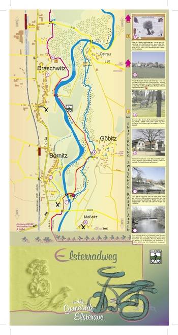Radelt man in Flussrichtung durch die Gemeinde Elsteraue, schlängelt sich der Elsterradweg ab Bornitz über Göbitz, Draschwitz, Ostrau, Reuden, Predel bis nach Profen.