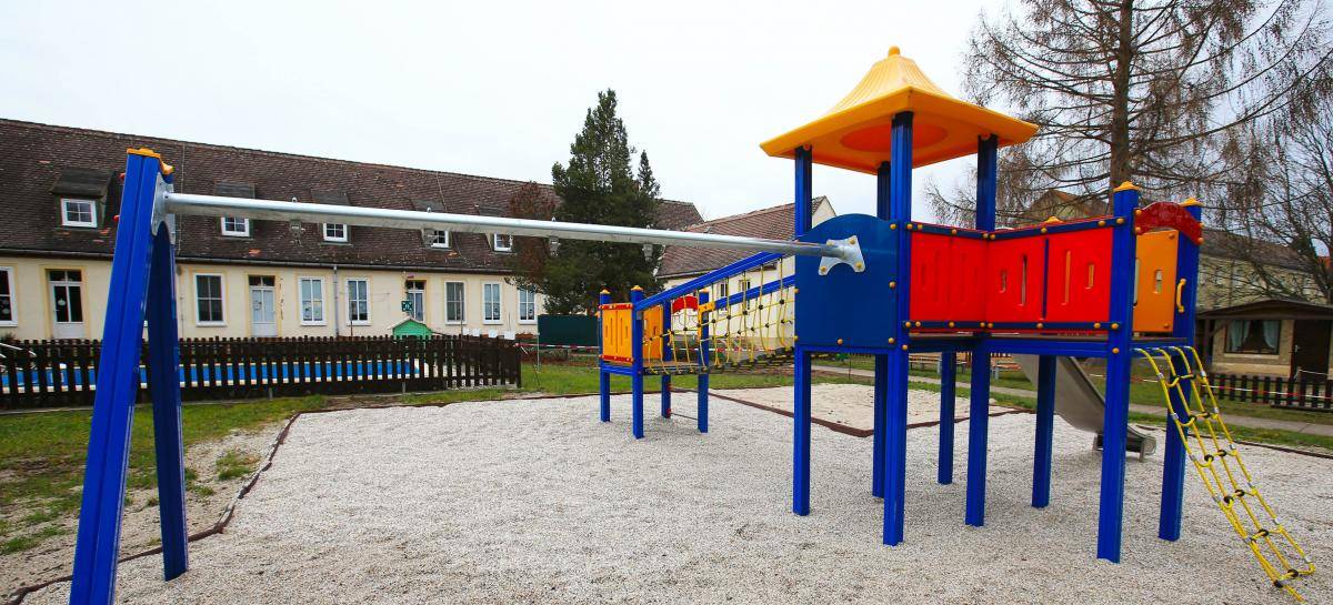 Lage: Die Kita liegt am Ortsrand von Profen. Gleich angrenzend befindet sich ein Waldgebiet und ein großer Sportplatz.